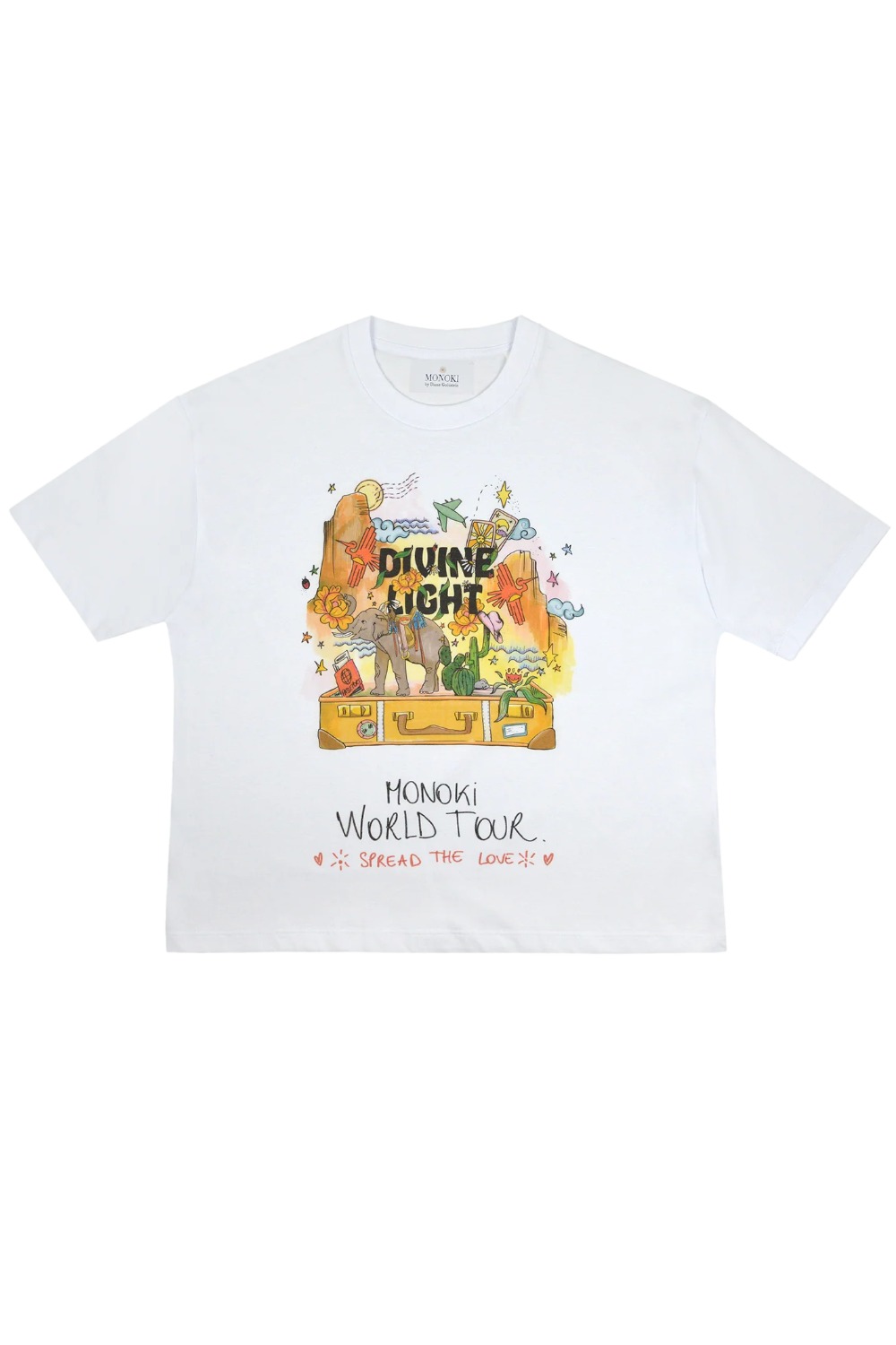 Le t-shirt Divine Light Monoki blanc combine une coupe confortable avec un imprimé inspiré de l’univers spirituel de la marque. Sa silhouette droite et son coton doux en font un essentiel du vestiaire casual. L’imprimé apporte une touche artistique et lumineuse à la tenue. À porter avec un jean ou une jupe fluide pour un look bohème contemporain.