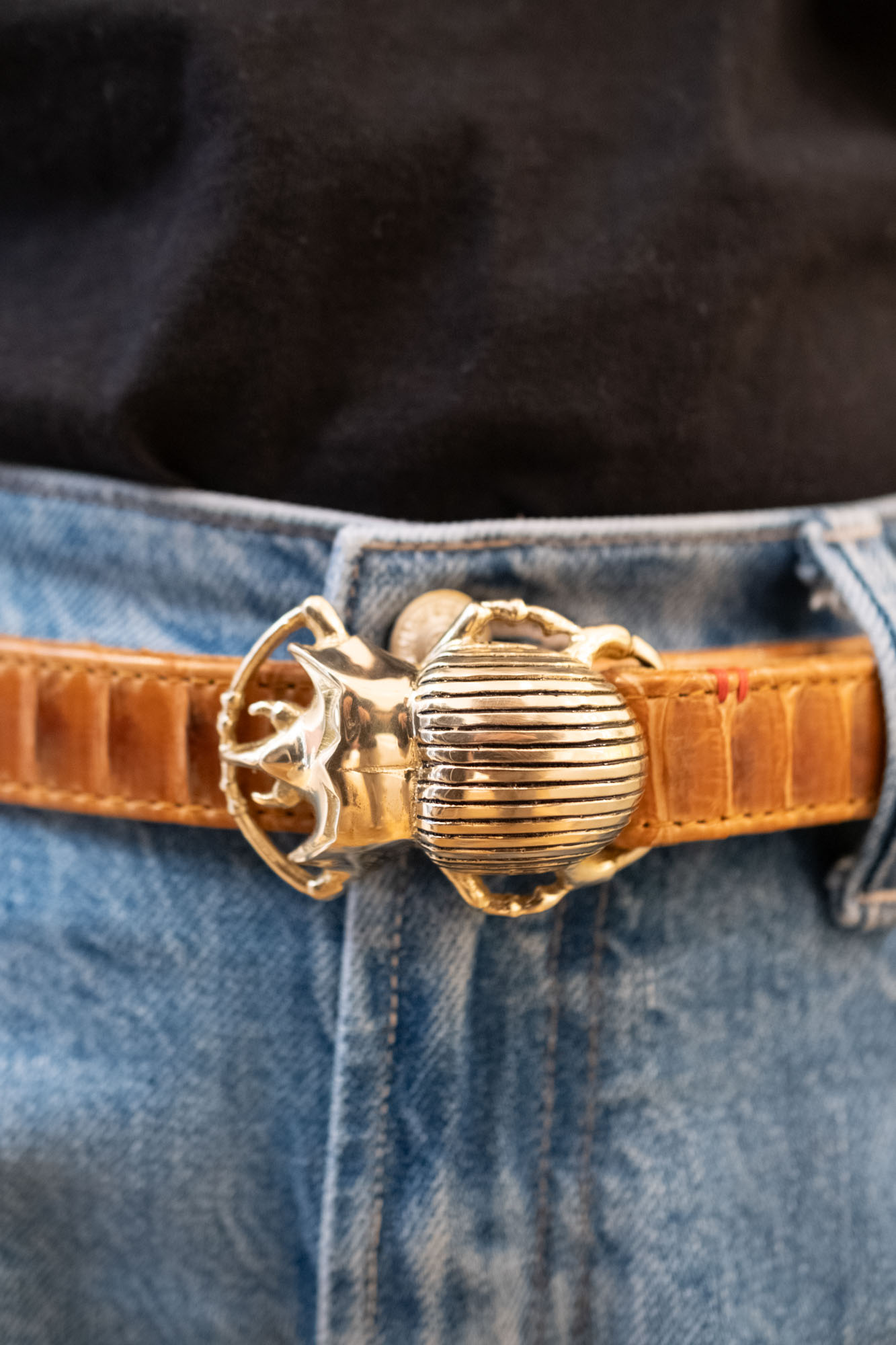 – coloris : croco moka, boucle scarabée dorée (petit modèle)
