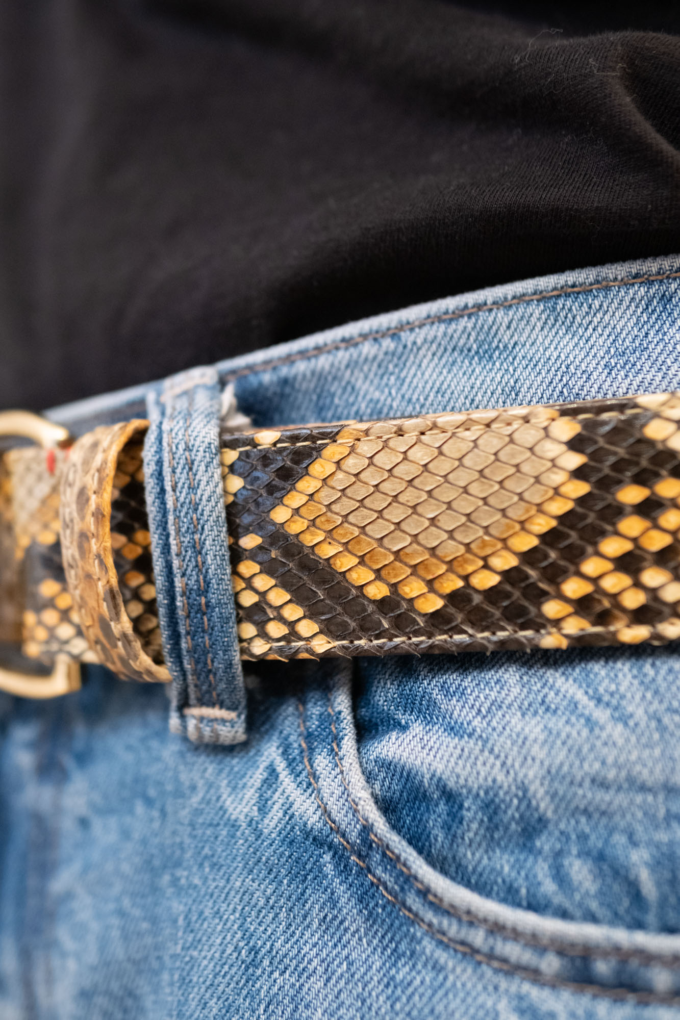 – composition : cuir de python doublé cuir, boucle en laiton