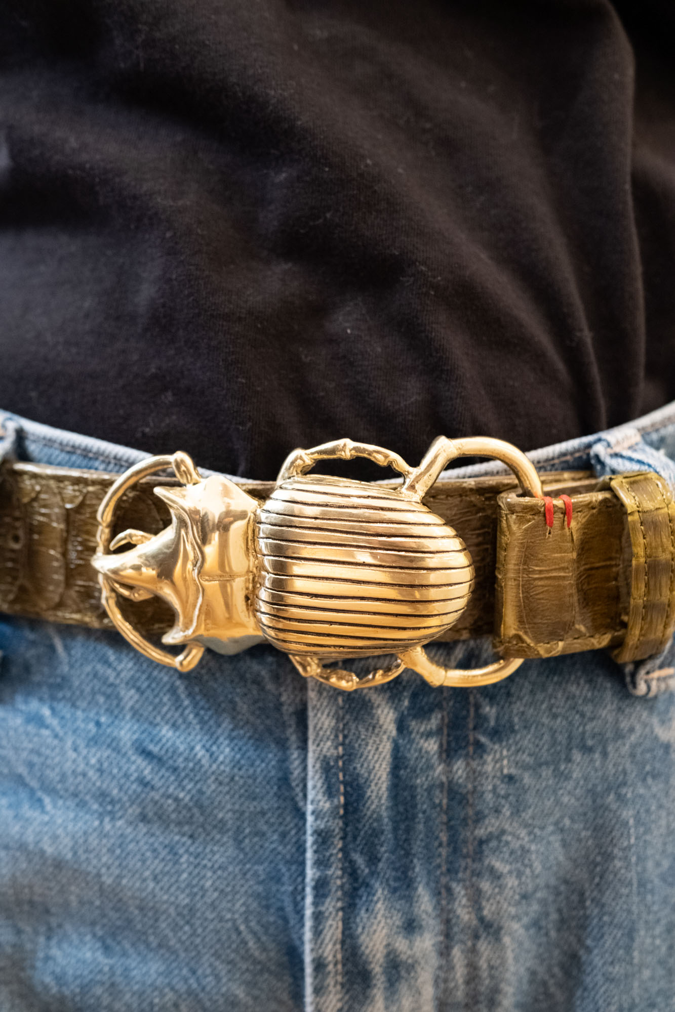 – coloris : croco kaki, boucle scarabée dorée (grand modèle)