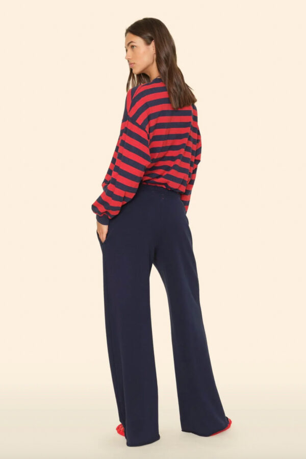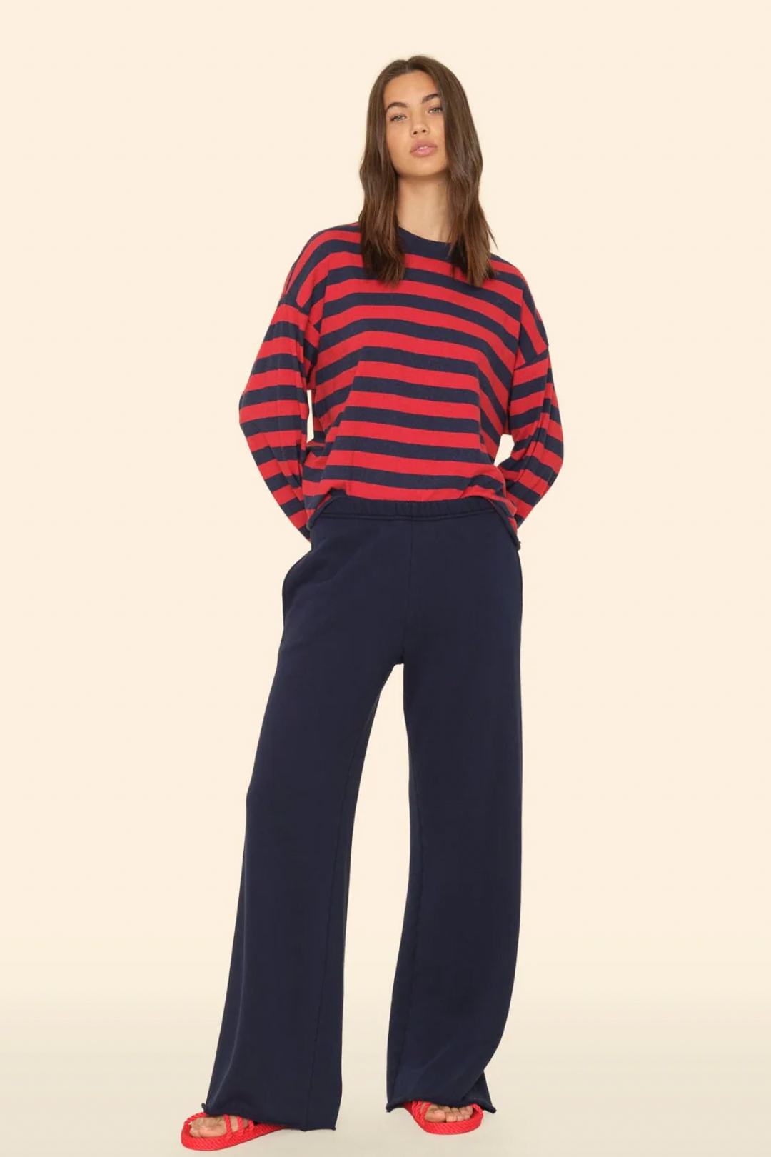 Découvrez le pantalon Emmette, de la maison Xirena. Confectionné dans une polaire ultra-douce pour un confort inégalé, ce pantalon de jogging de couleur navy présente une coupe large et une taille élastiquée qui s’ajuste parfaitement à votre silhouette. Doté de poches latérales, il allie confort et fonctionnalité. Il vous accompagnera aussi bien lors de vos journées détente que lors de vos sorties décontractées.