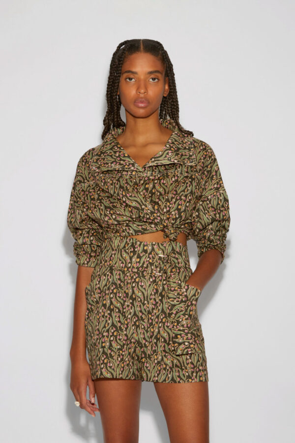 Présenté dans un élégant coloris charcoal, le short Sadie Roseanna est confectionné dans une popeline de coton de très haute qualité provenant de la réputée maison Liberty. Le design se distingue par un motif de clochettes qui offre un look à la fois citadin et romantique. Grâce à une ceinture conçue avec une boucle passante argentée, il peut se porter ajusté à la taille ou légèrement plus bas pour un confort personnalisé. Les grandes poches rectangulaires ajoutent également un design contemporain et décontracté à la pièce. Avec sa coupe ample, ce short offre une liberté de mouvement totale et un style décontracté sans effort.