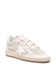 Les Ball Star Golden Goose revisitent l’esthétique skate des années 80 avec une palette beige, argentée et dorée au charme rétro. Leur finition volontairement vieillie, signature de la marque, leur donne un caractère authentique et urbain. Confortables et stylées, elles dynamisent un jean comme une robe fluide.