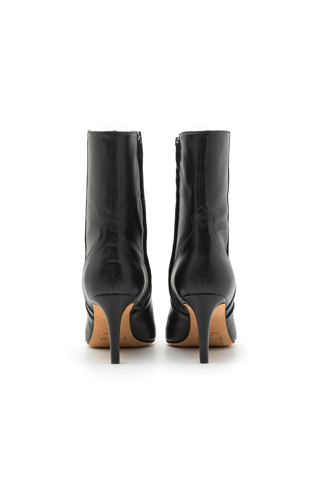 Bottines modèles Davy en cuir de la marque française Iro. Ces bottines noires disposent d’un talon aiguille haut de 8 cm et d’un bout pointu. Très élégantes et sexy avec leur fermeture zippée sur les côtés, elles sont irrésistibles.