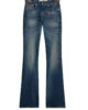 Ce jean bootcut Golden Goose offre une silhouette allongée et féminine grâce à sa taille haute et sa coupe évasée. Son délavage vintage et ses détails métalliques signature apportent une touche rock et contemporaine. Parfait avec une chemise fluide ou un t-shirt rentré pour un look effortless chic.