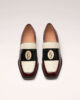Les mocassins Nono signés Nomasei se déclinent dans une version tricolore audacieuse mêlant noir, blanc et camel. Leur design graphique et leur semelle crantée offrent une touche mode à la silhouette. Idéal pour dynamiser une tenue classique ou compléter un look minimaliste.