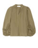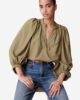 La blouse Bell de Vanessa Bruno, dans un élégant coloris kaki, est une pièce maîtresse pour des tenues sophistiquées au quotidien. Confectionnée en viscose soyeuse, elle se distingue par sa coupe fluide et féminine, soulignée par des fronces délicates aux épaules et un col rond qui s’ouvre en V. Ses manches bouffantes, resserrées aux poignets élastiqués, apportent une touche de volume raffinée, tandis que les détails plissés au dos et au col ajoutent du mouvement. Polyvalente, la blouse Bell s’adapte facilement à un look décontracté ou plus habillé, selon les occasions.