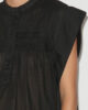 Avec son col officier, sa patte à six boutons et ses détails de smocks et de fronces à l’avant et à l’arrière, le chemisier Leaza Isabel Marant Etoile noir confectionné en voile de coton bio offre à la fois confort et durabilité. De plus, les bordures roulées aux mancherons offrent une finition soignée et délicate.