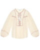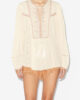 Confectionné dans un coton brodé crème, le haut bohème-chic Silekia Isabel Marant Etoile séduit par ses manches bouffantes et son encolure dégagée ornée de cordons à pompons. Les motifs de broderie orangés et violets apportent une note d’éclat et de couleur, tandis que les détails de fronces ajoutent une dimension de légèreté et de mouvement.