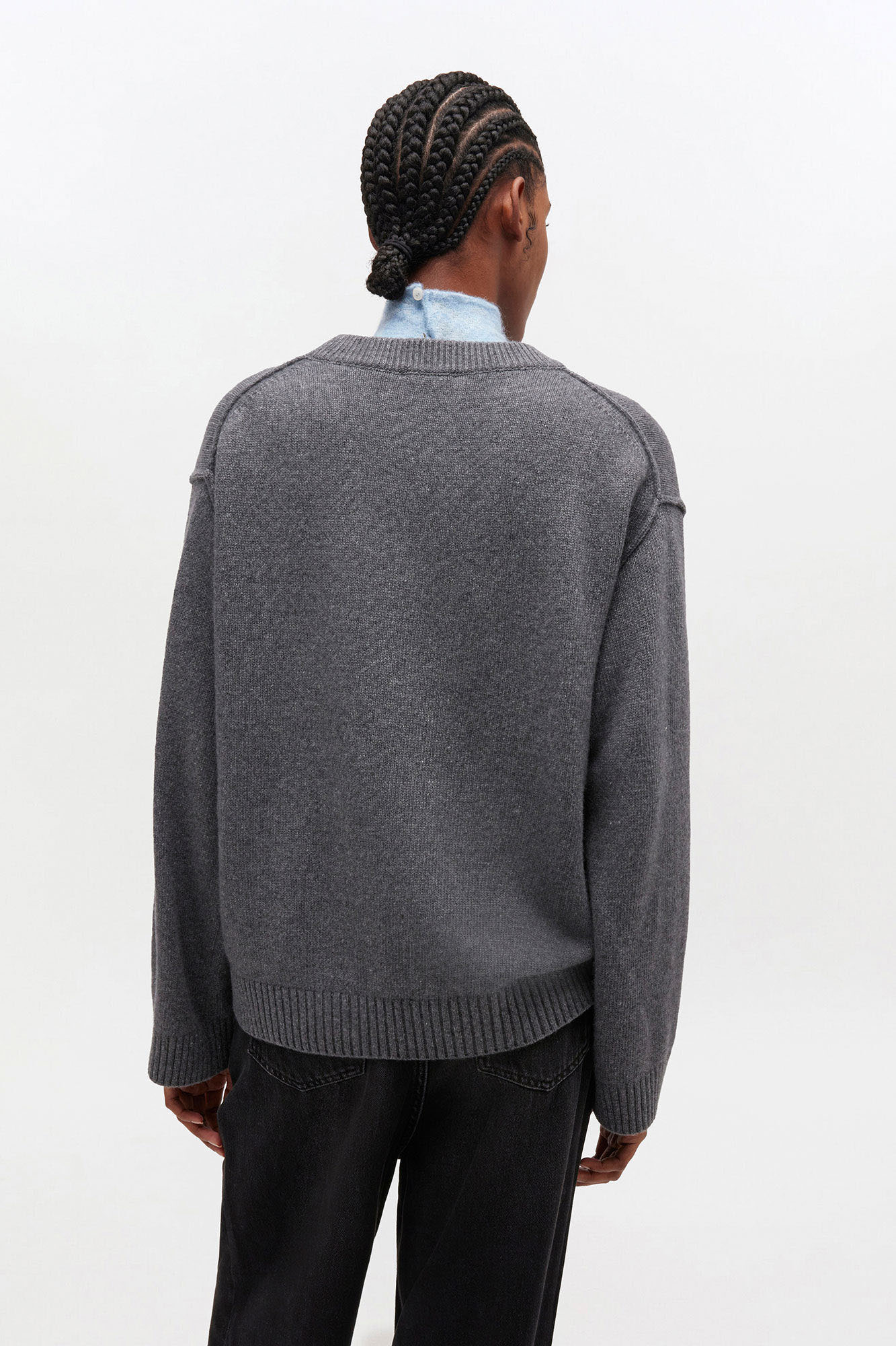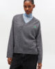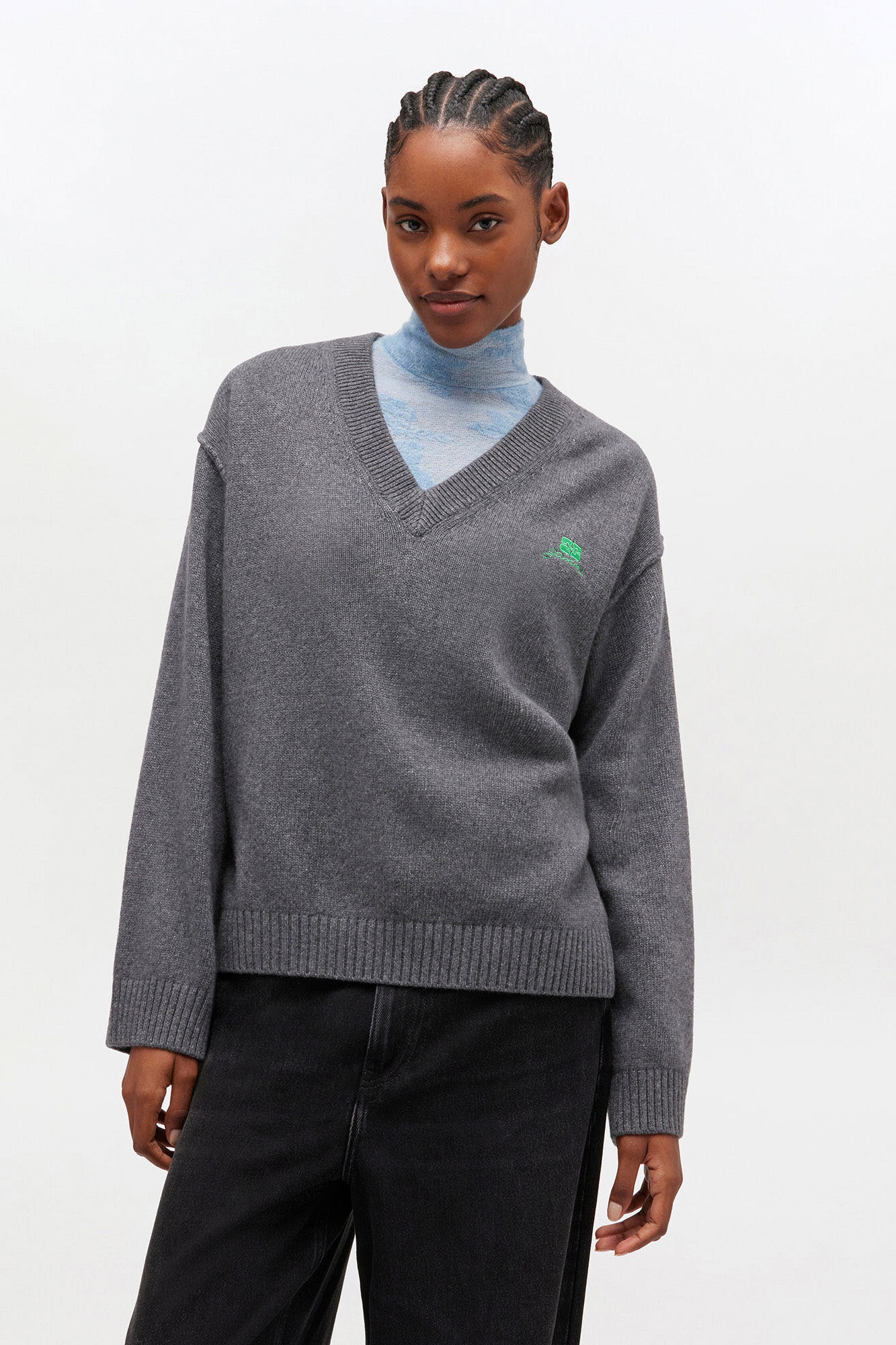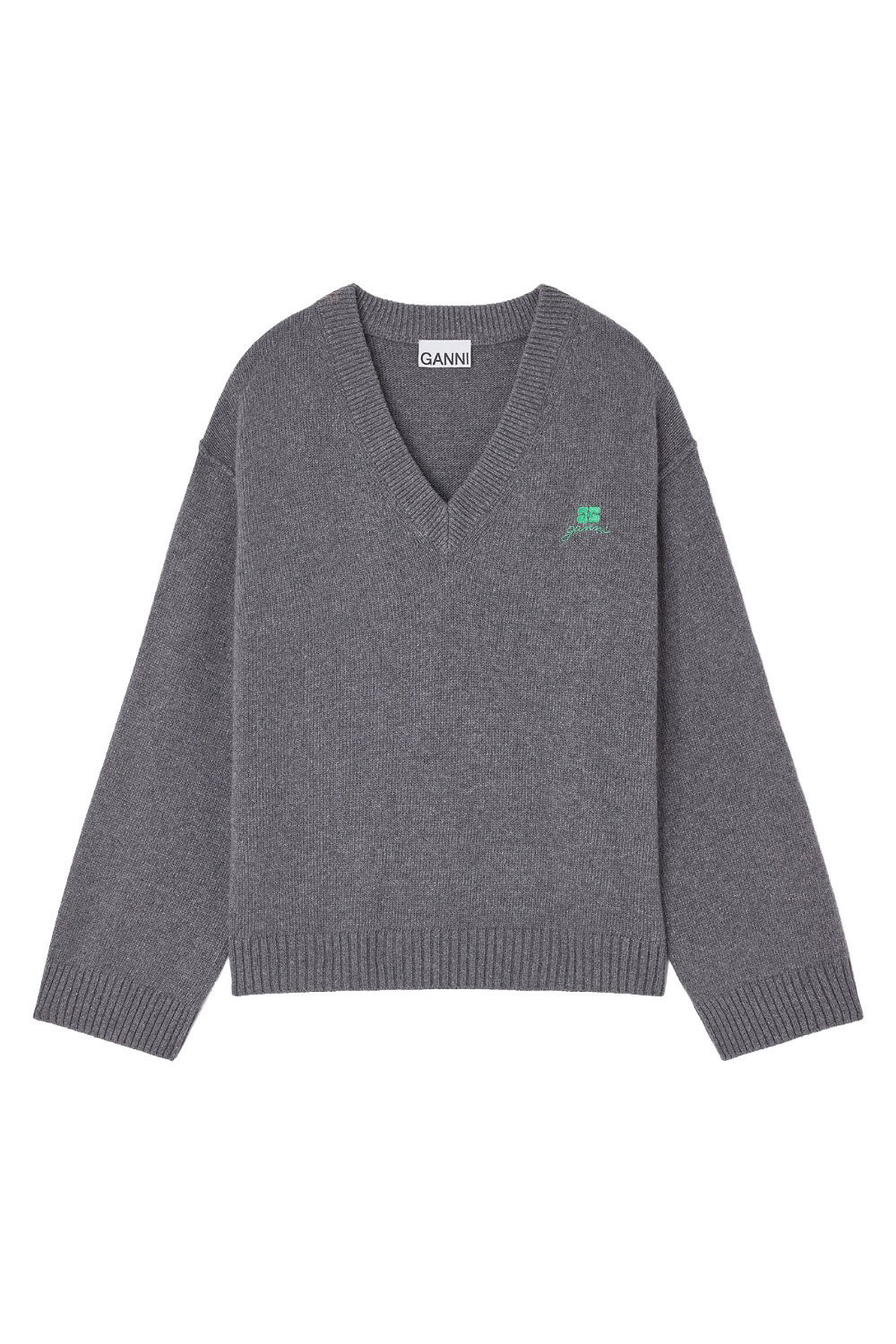 Ce pull Ganni à col V est confectionné en laine mélangée pour un confort douillet. Sa coupe légèrement oversize et sa maille souple en font un essentiel du quotidien. Un basique moderne à associer à un jean ou une jupe midi selon l’occasion.