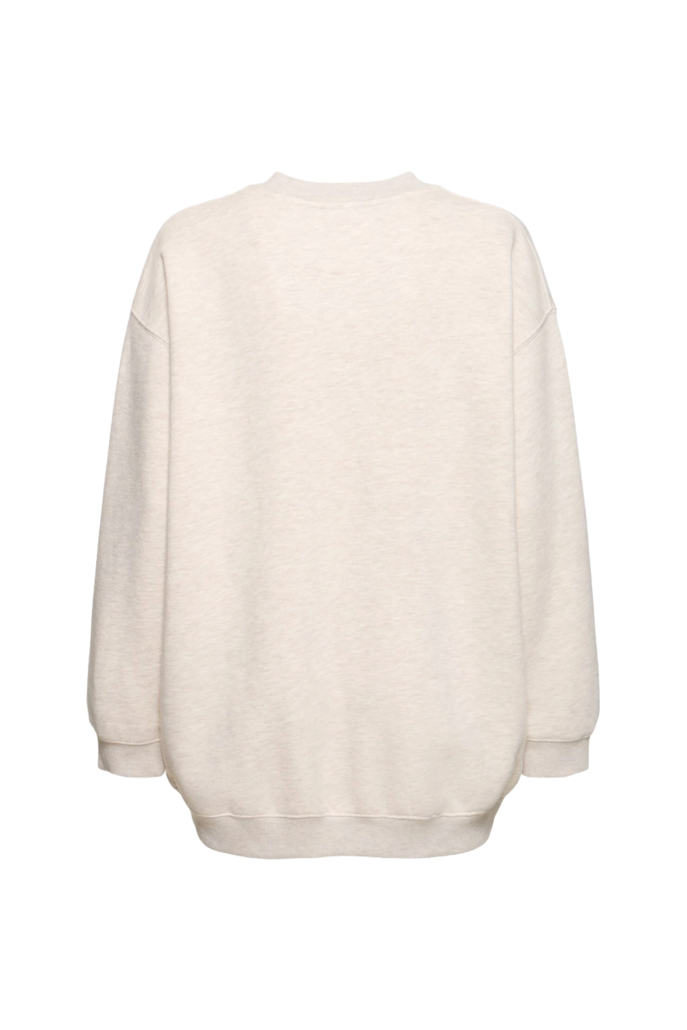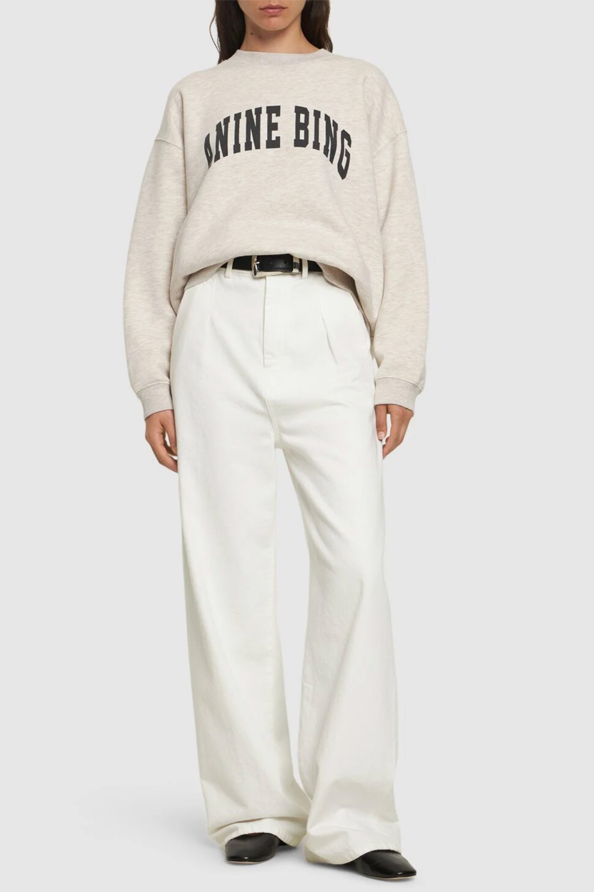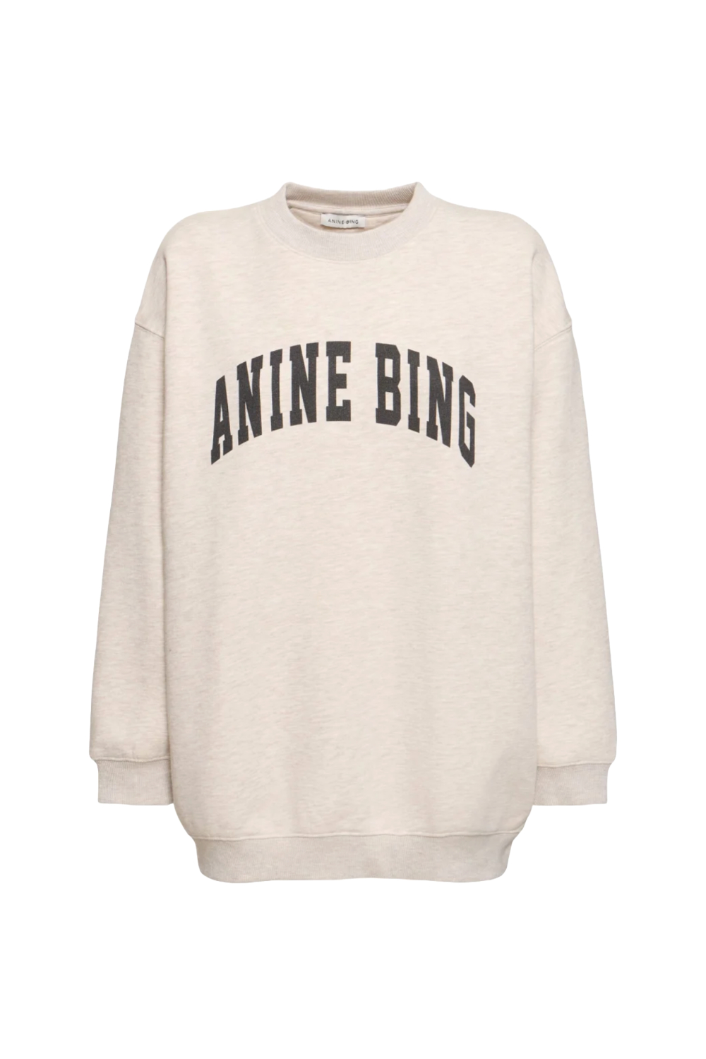 Le sweat-shirt Tyler Satin Anine Bing est un pull col rond oversized confectionné en coton biologique. De couleur ivoire, il se distingue par un graphisme en patch satin et une typo inspirée des sweats universitaires en ivoire sur la poitrine, complétant son look athlétique.