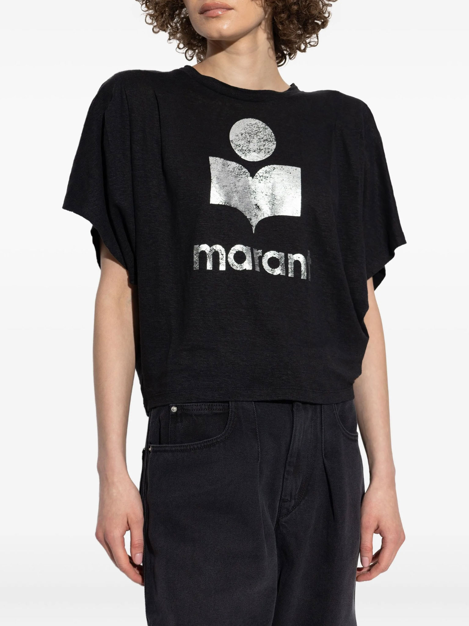 Le T-shirt Koldi Isabel Marant en lin noir est rehaussé d’un logo métallisé argenté pour une touche rock-chic. Léger et fluide, il offre une allure décontractée et raffinée à la fois. Idéal à glisser dans un pantalon taille haute ou sous un blazer.