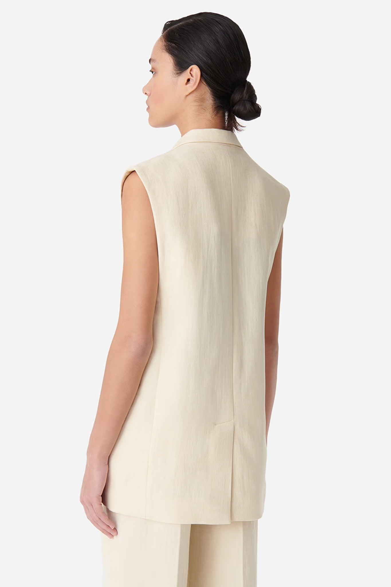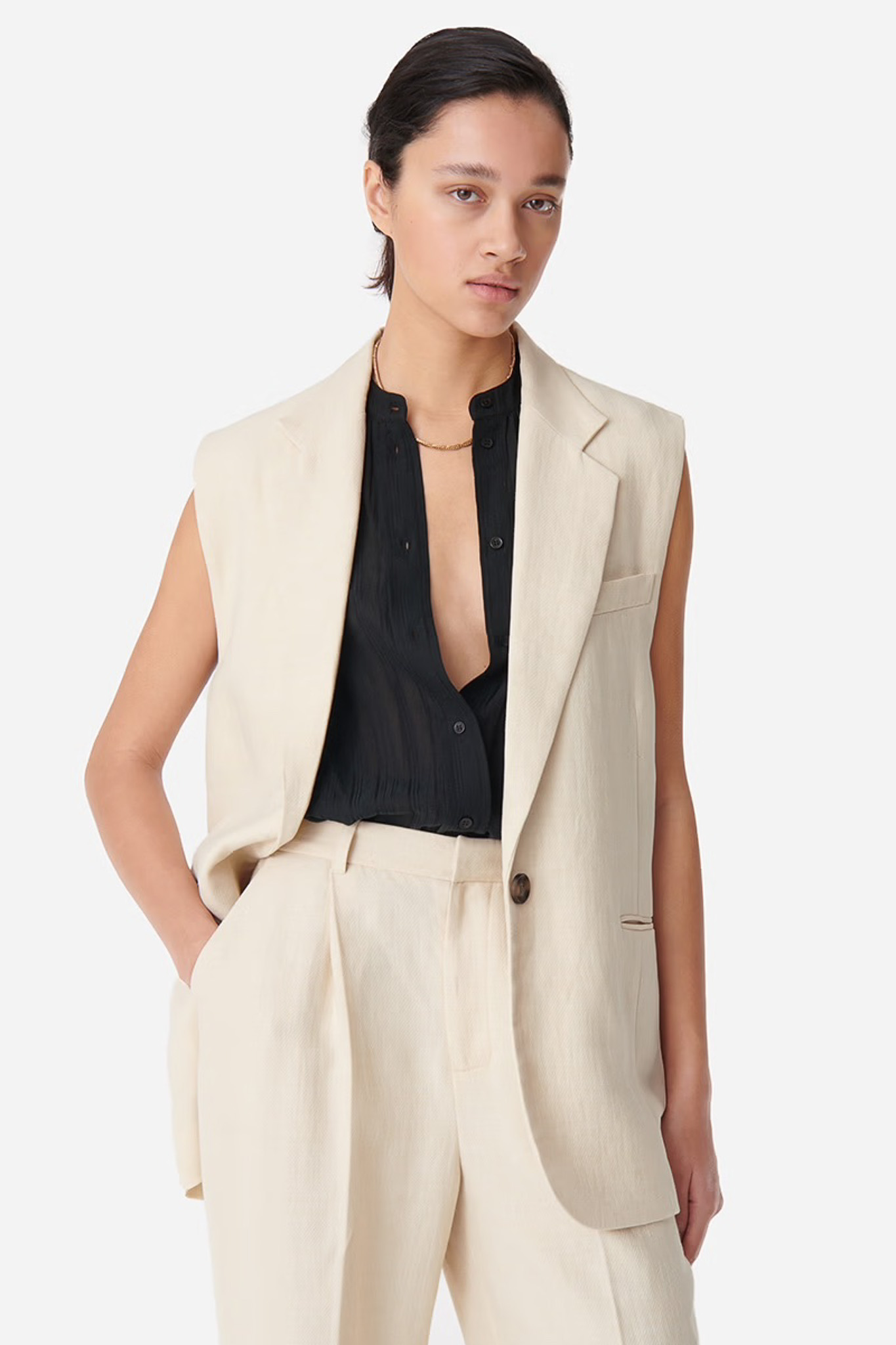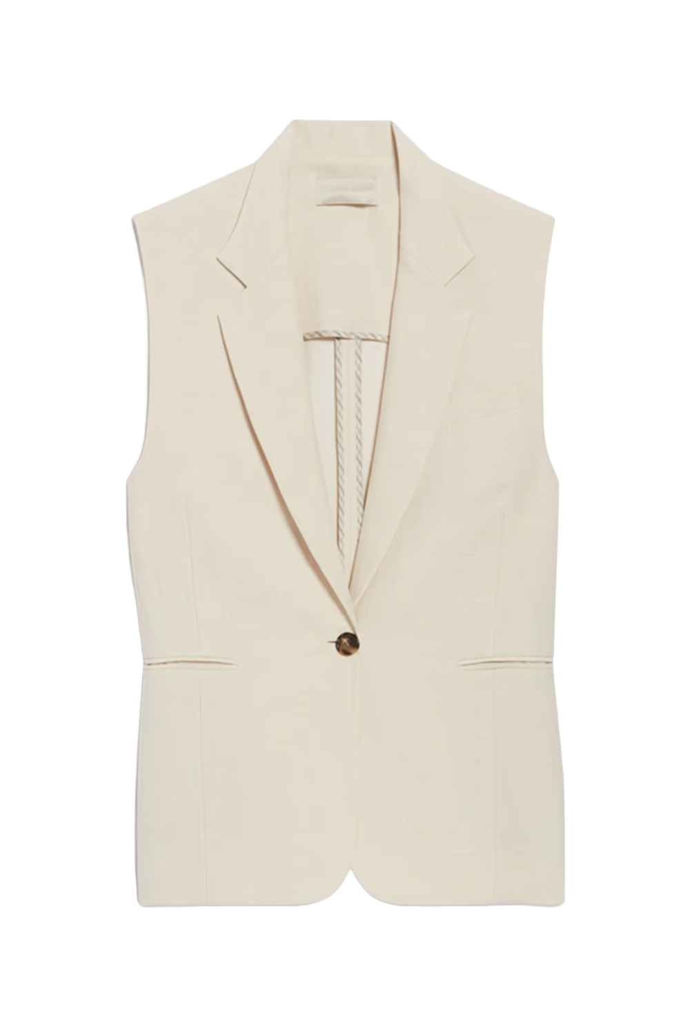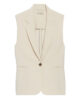 La veste sans manches Christen Vanessa Bruno beige/ivoire offre un col tailleur et une ligne épurée qui ajoutent une touche d’élégance à votre tenue. Dotée d’une poche poitrine et de deux poches latérales pratiques, elle se ferme par un bouton aspect corne. La fente d’aisance dans le dos garantit une grande liberté de mouvement.