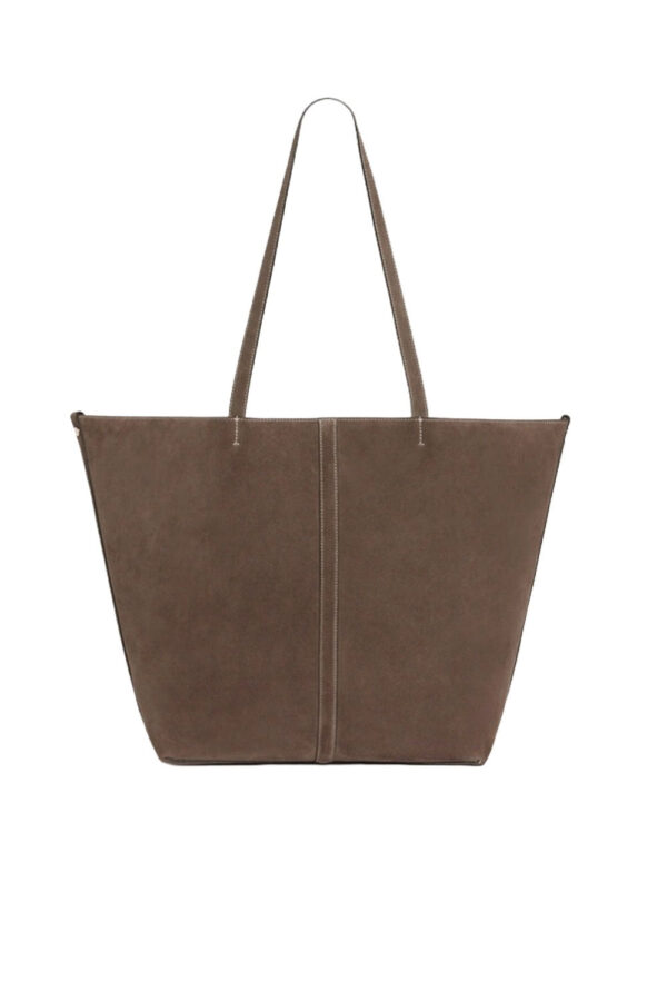 Le cabas Daily en cuir velours taupe de Vanessa Bruno conjugue élégance intemporelle et praticité. Sa grande contenance et sa souplesse naturelle en font le compagnon idéal du quotidien. Les surpiqûres ton sur ton et les anses structurées signent une allure chic et moderne. Il se porte à la main ou à l’épaule, pour accompagner toutes vos journées avec style et simplicité.
