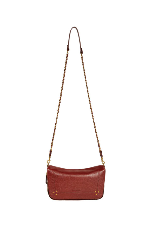 Le sac Bobi S, en cuir grainé satiné, de couleur acajou, de Jérôme Dreyfuss, est doté d’une bandoulière amovible, composée d’une chaîne tressée en cuir, mesurant 105 cm. Il se ferme facilement grâce à un rabat en cuir magnétique, offrant à la fois sécurité et praticité. À l’intérieur, le sac est conçu de manière fonctionnelle avec un grand compartiment pour organiser vos affaires. De plus, vous y trouverez un miroir pratique et un lien porte-clés, parfaits pour garder vos accessoires à portée de main.
