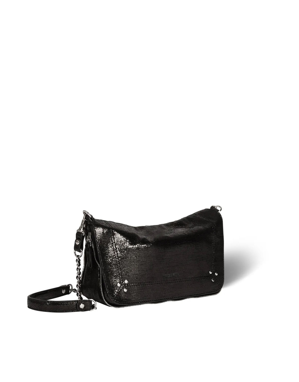 Sac à bandoulière Bobi Jérôme Dreyfuss, en cuir lamé noir.