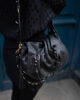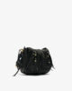 Le sac Bolton d’Isabel Marant combine minimalisme et caractère. Confectionné en cuir noir et argenté, il présente une structure rigide et des finitions métalliques qui soulignent son style moderne. Un accessoire fort qui complète aussi bien un look casual qu’un ensemble plus habillé.