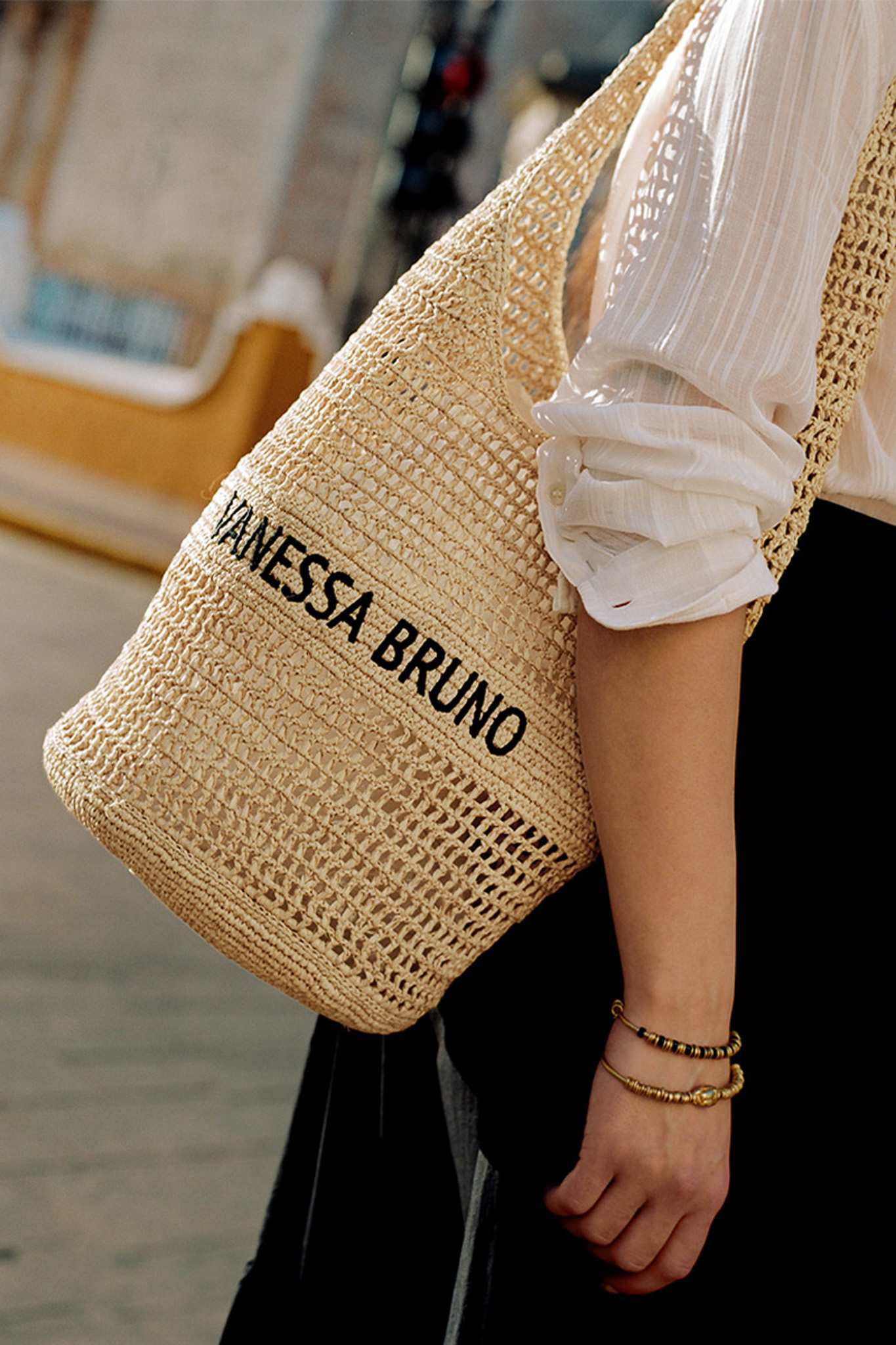 Fabriqué en raphia, le sac Hobo incarne le style décontracté-chic avec une touche de sophistication. Il est doté d’une grande anse pour un porté épaule confortable, d’un fond ovale pour une stabilité accrue et d’une bande centrale arborant une broderie Vanessa Bruno en coton.