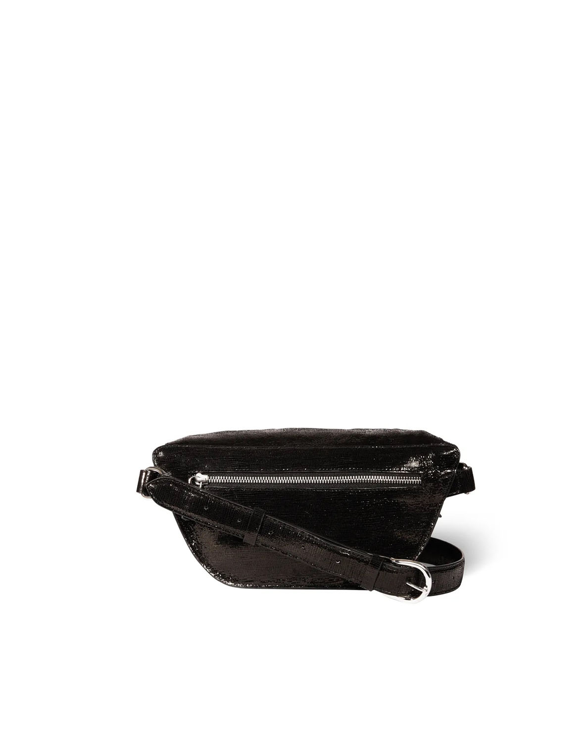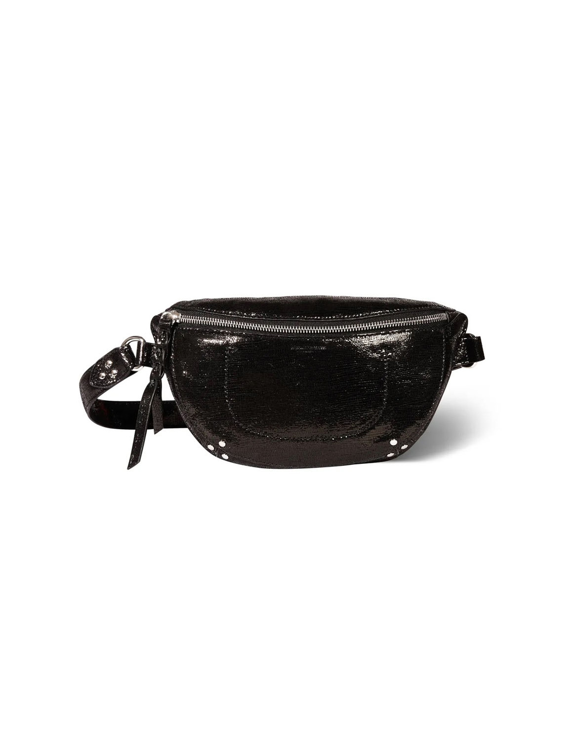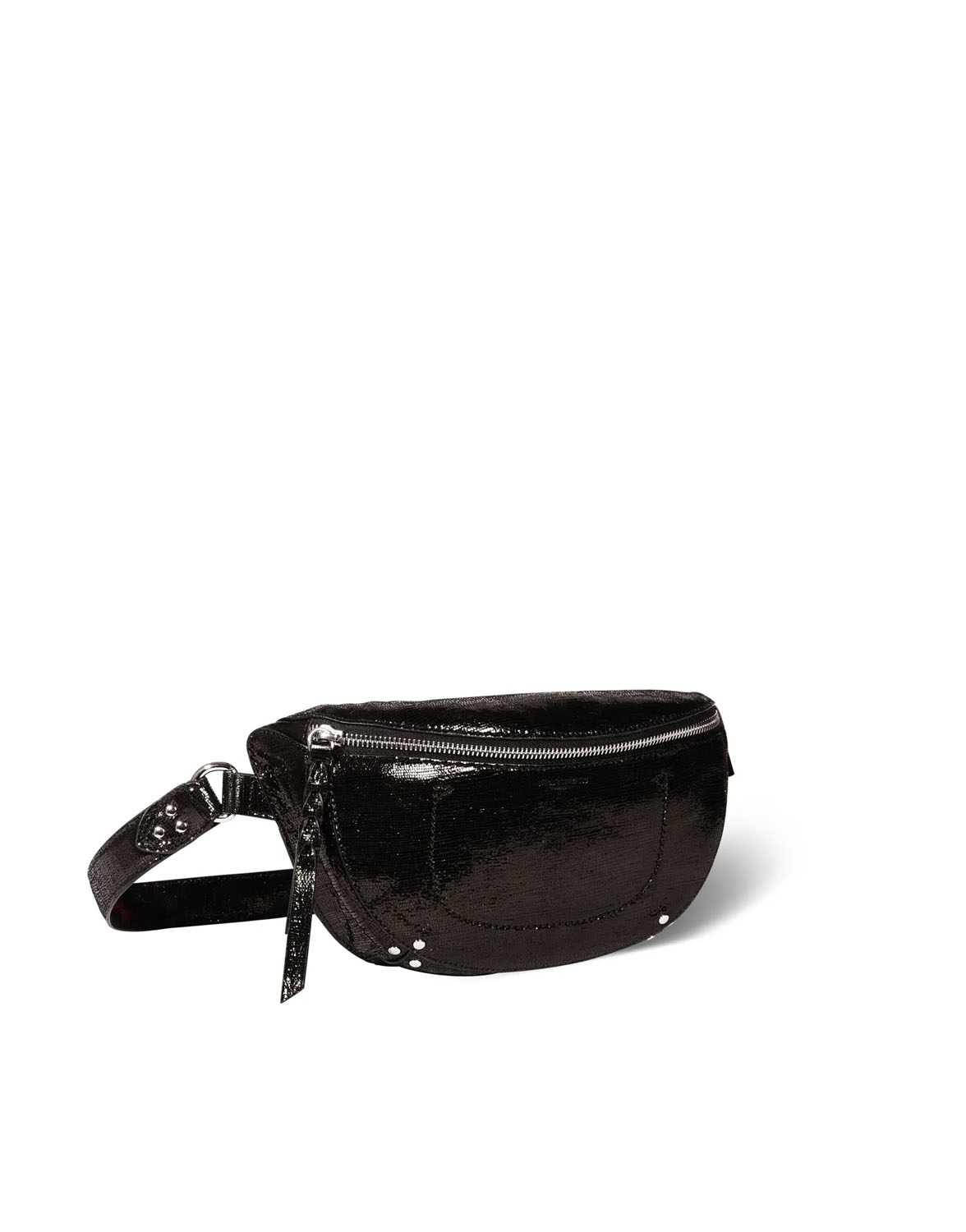 Sac-banane Lino Jérôme Dreyfuss, en cuir lamé noir avec un compartiment principal zippé.