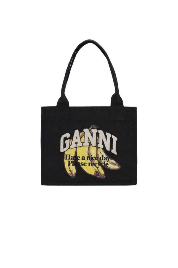 Le grand tote bag Banana Ganni revisite l’esprit cabas avec un imprimé banane noir et jaune qui apporte une note ludique et décalée à vos looks du quotidien. Confectionné dans une toile résistante, il offre un large espace intérieur pour transporter toutes vos affaires avec style. Idéal pour vos journées actives ou vos escapades du week-end.