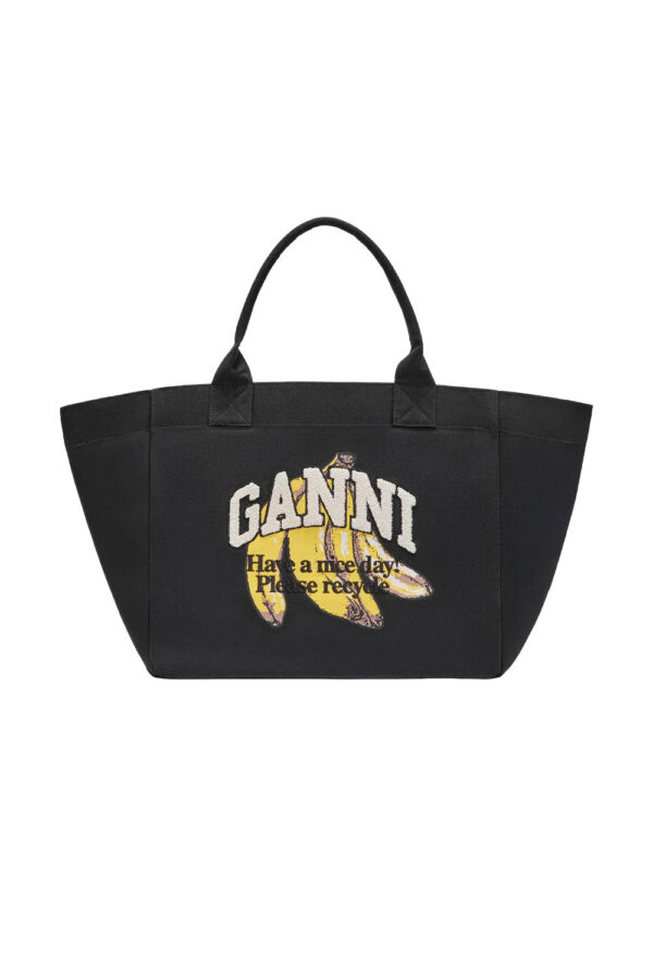 Le tote bag XXL Banana Ganni pousse l’esprit cabas à son maximum avec un format généreux et un imprimé banane iconique. Fabriqué en toile résistante, il se porte à l’épaule pour transporter facilement l’essentiel et plus encore. Parfait pour le sport, les voyages ou pour donner du caractère à un look minimaliste.