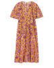 Fabriquée en popeline de coton, une matière légère parfaite pour la saison estivale, la robe ample et longue safran Brooklyn Vanessa Bruno se distingue par ses manches arrondies et son volume accentué par des plis élégants. Dotée d’une encolure tunisienne et de fentes latérales pour une touche de praticité, cette robe chasuble à motifs fleuris violets et rouges vous offrira un look frais en toute occasion.