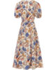 La robe écrue à plantes multicolores Carina Ulla Johnson en popeline de coton est resserrée à la taille avec une encolure froncée en V, des manches bouffantes et courtes, et des épaules froncées pour une touche de sophistication. Le bas volanté ajoute une note romantique, tandis que le lien à nouer à la taille permet une coupe ajustée et flatteuse. Elle est parfaite pour les occasions spéciales ou pour un look chic au quotidien.