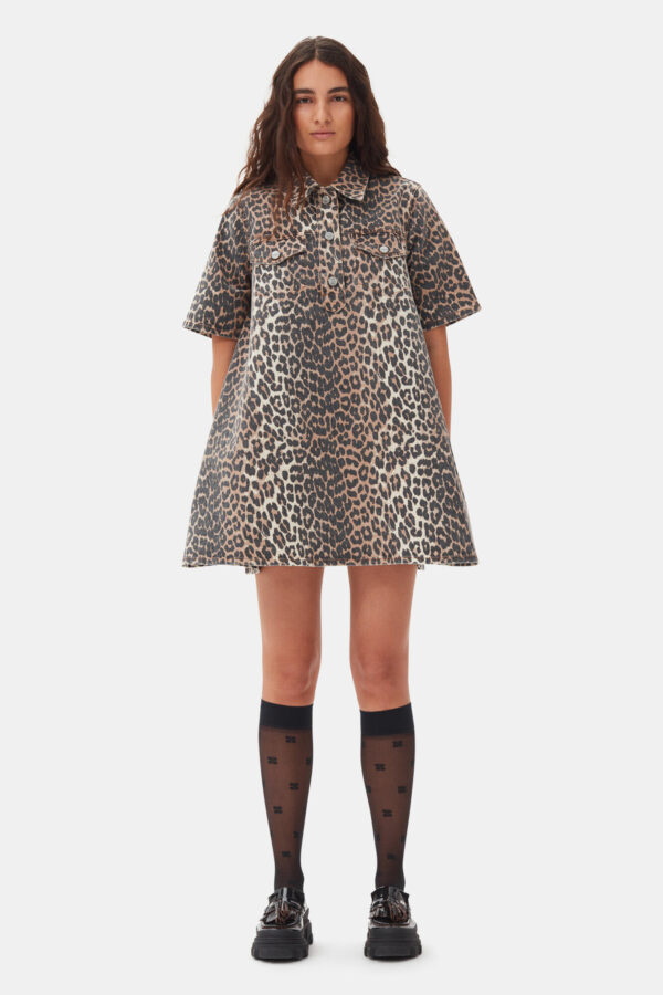Osez le denim imprimé avec cette robe en jean Ganni à motif léopard. Sa coupe mini et son denim structuré apportent une touche moderne et affirmée, idéale pour un look casual chic. Portez-la avec des baskets pour une allure décontractée ou avec des bottines pour un style plus audacieux.