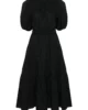 Réalisée dans une popeline de coton noire, la robe Olina Ulla Johnson à des manches bouffantes qui encadrent délicatement cette robe mi-longue. L’encolure fendue ajoute une note moderne et élégante. La taille élastique ajustable avec cordon assure un confort optimal.