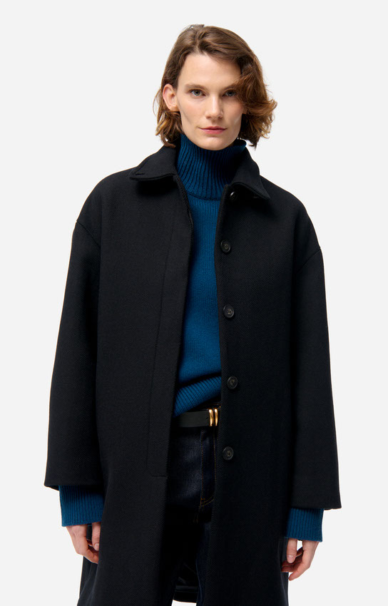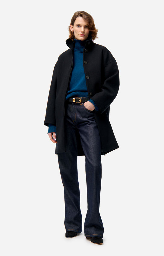 Ce manteau Fépin de Vanessa Bruno allie sobriété et élégance. Réalisé en laine vierge, il présente une coupe ajustée et un col tailleur qui structure la silhouette. Un classique du vestiaire féminin à associer avec un pantalon large ou une robe fluide.
